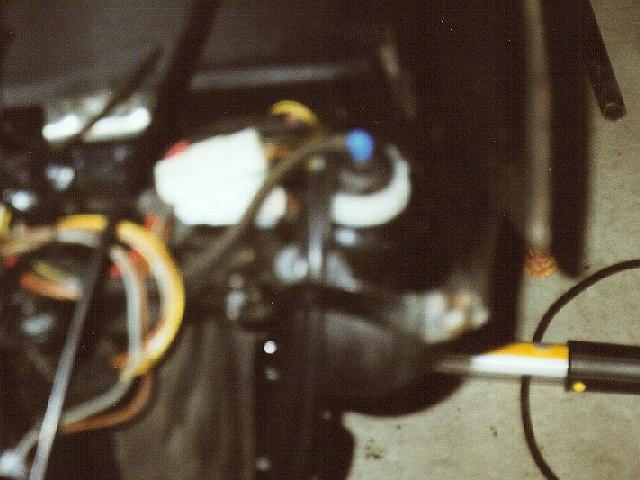 Den Außentemperaturfühler montiert man im Wasserkasten vor dem Motorsteuergerät an einen freien Bolzen mit einer umgebauten Halterung vom Golf III. Beim Golf III sitzt der Temperaturfühler normalerweise an der Hupenhalterung, beim Corrado unterm linken Kotflügel. Um ihn beim Golf II dort zu befestigen, ist entweder das Kabel zu kurz oder keine Durchführung vorhanden. - Wahlweise kann man auch einen Golf II Kabelbaum an den VR6 Motor anpassen, das ist jedoch deutlich aufwendiger und auch nicht zu empfehlen, weil man ohne das Lüftersteuergerät die dritte Lüfterstufe des 450W VR6-Lüfters nicht schalten kann.