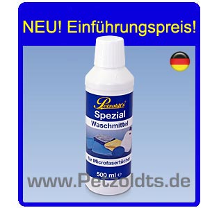 Nach intensiver Entwicklungsarbeit, mit einem deutschen Spezial-Labor, wird exklusiv für Petzoldt's dieses Spezial Waschmittel um Microfaserwerkzeuge, die zur Fahrzeugpflege eingesetzt werden wirksam zu reinigen, hergestellt.