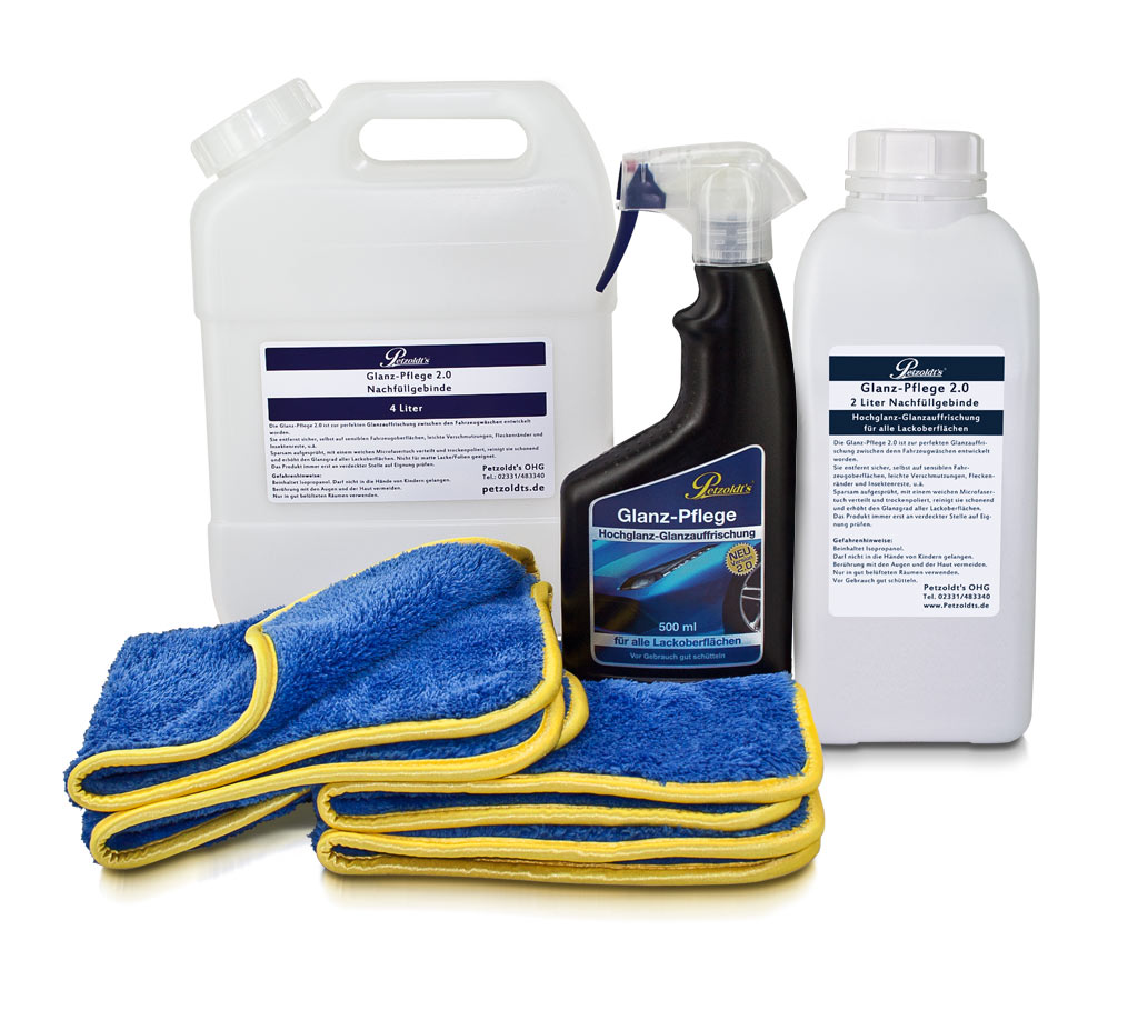 Mit der Glanz-Pflege 2.0 kann man alle glänzenden Oberflächen (bspw. Lack, Kunststoff, Glasscheiben und Alu- oder Chromflächen) aufhübschen.Erhältlich als 500 ml Spray http://www.petzoldts.de/shop/P…-Glanz-Pflege-p-1032.html